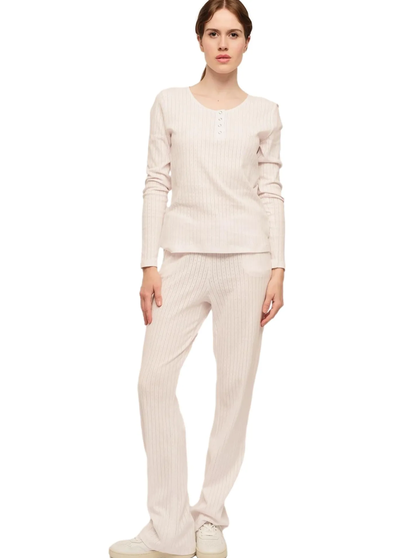 Strikket topp med knapper og rund hals i normal passform.