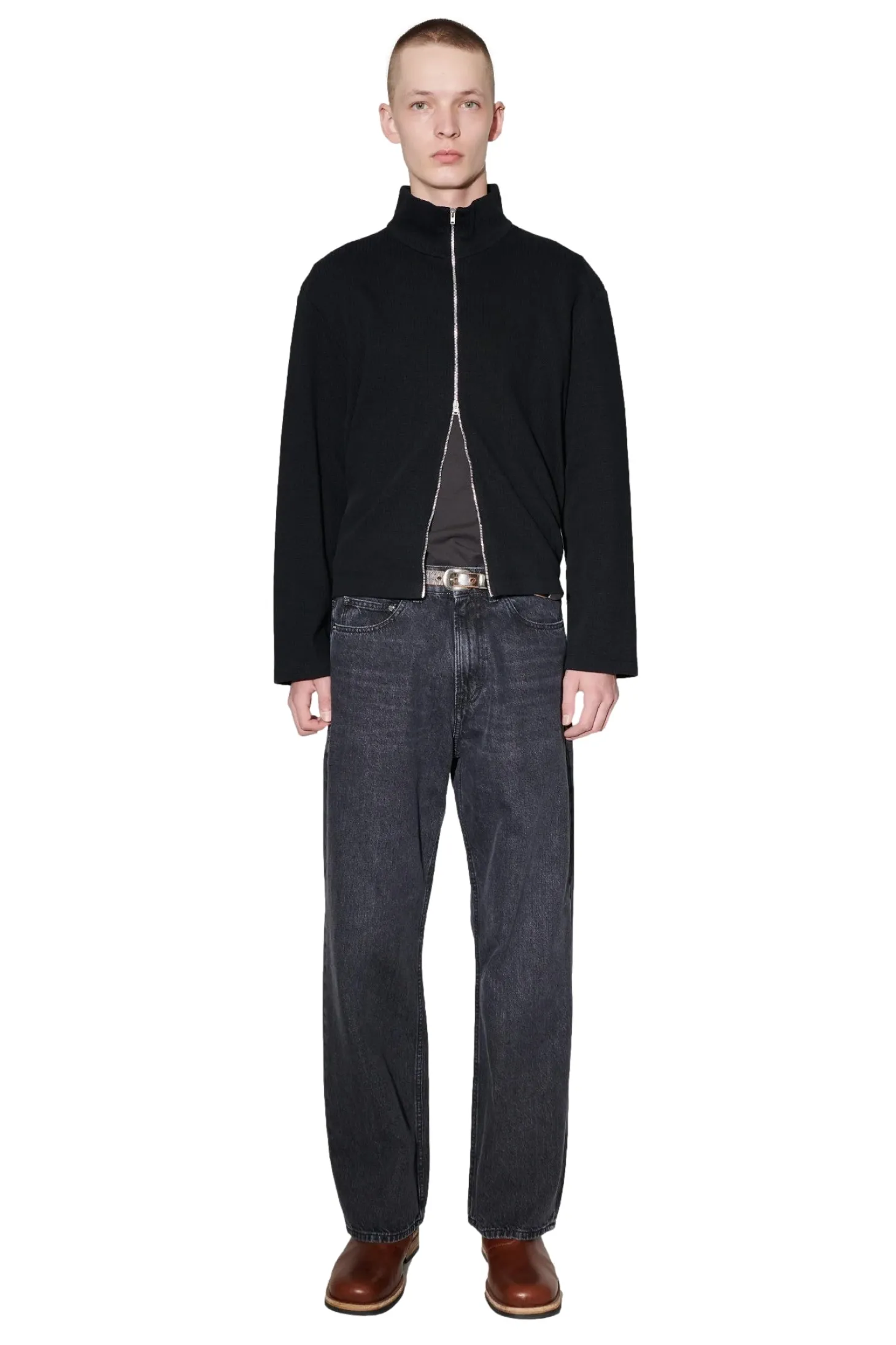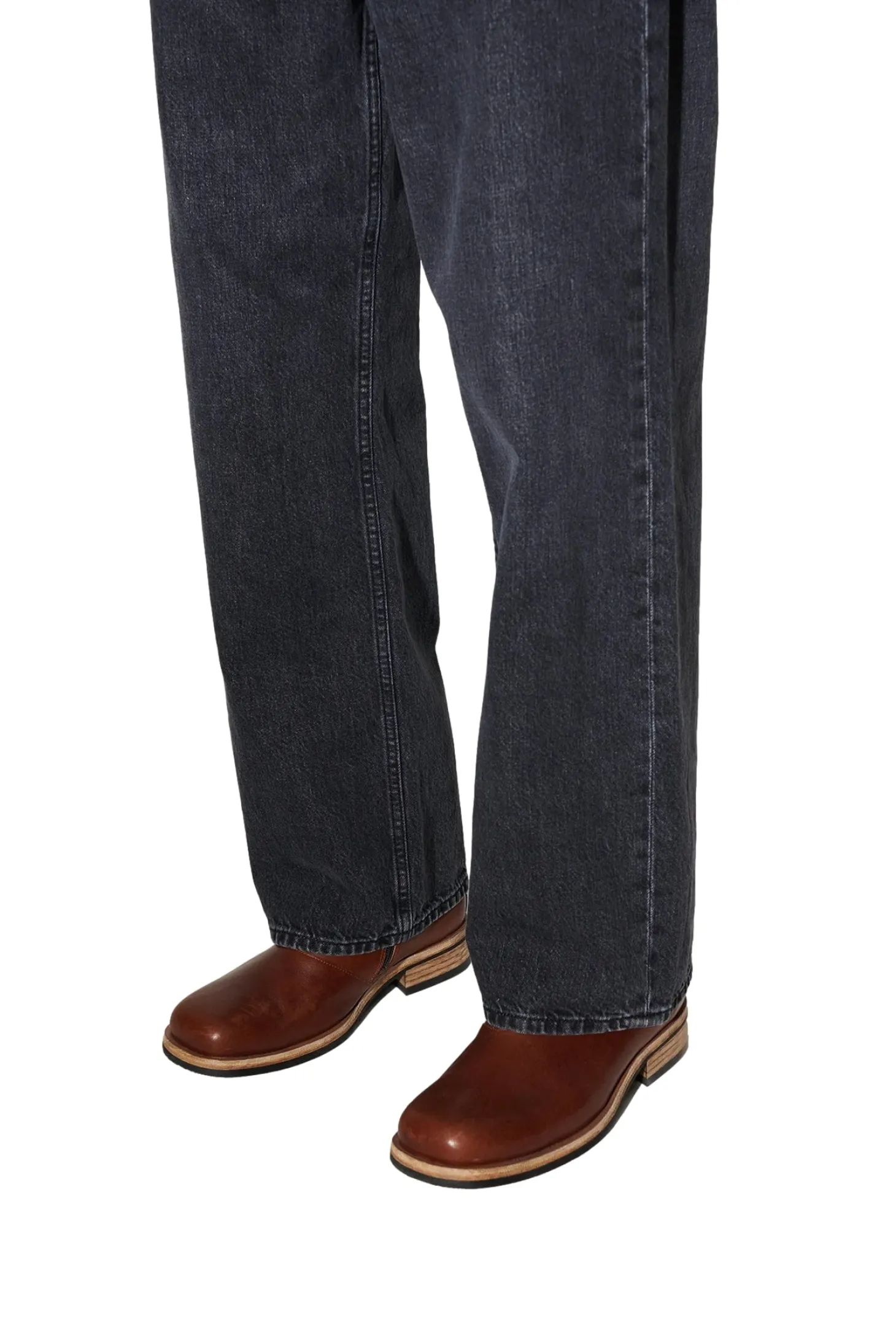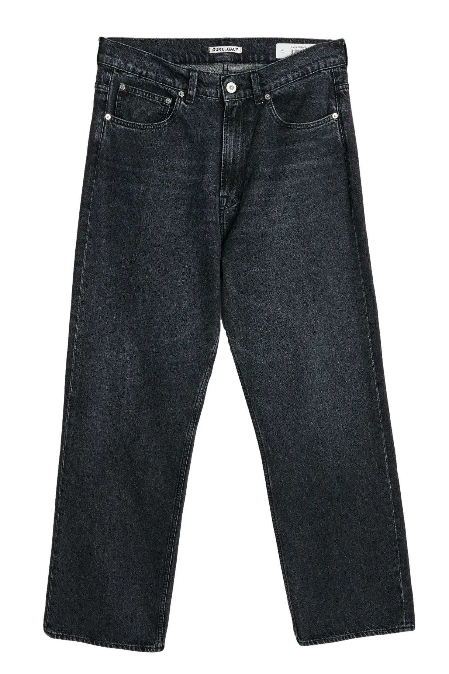 Avslappede jeans med rette bein og vasket sort farge.