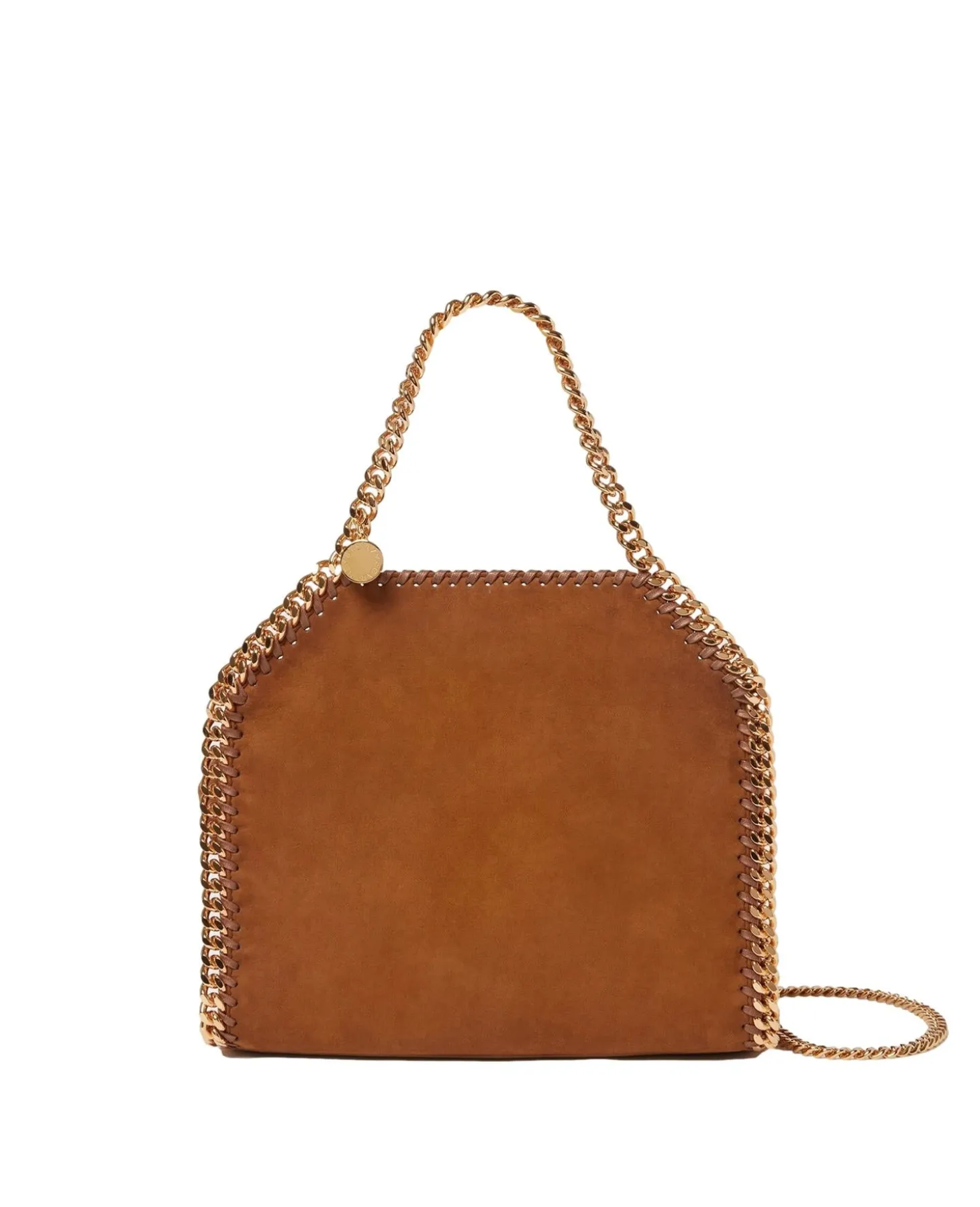 En kompakt versjon av vår ikoniske Falabella-silhuett, denne mini-tote-vesken har akkurat nok plass til å bære dine daglige nødvendigheter. Bevisst laget av vårt veganske alternativ til semsket skinn, er den slouchy vesken hengt opp i en resirkulert messing og resirkulerbar aluminiumskjede. Oppbevar telefonen, lommeboken og daglige nødvendigheter inni.