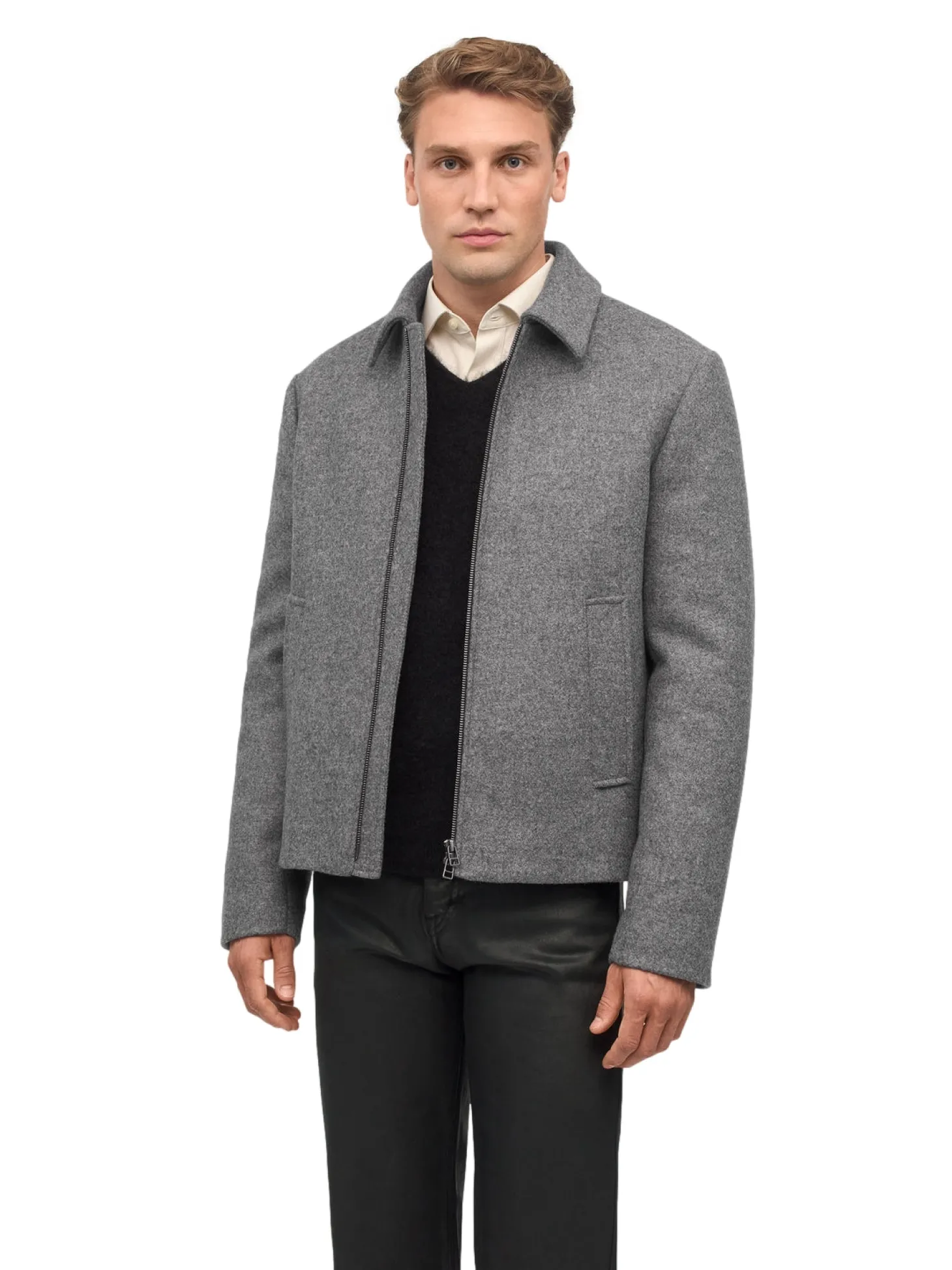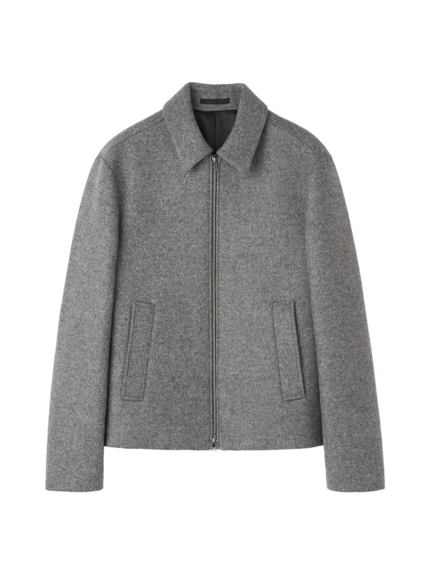Ulljakke med spiss krage og stikklommer i smal passform.