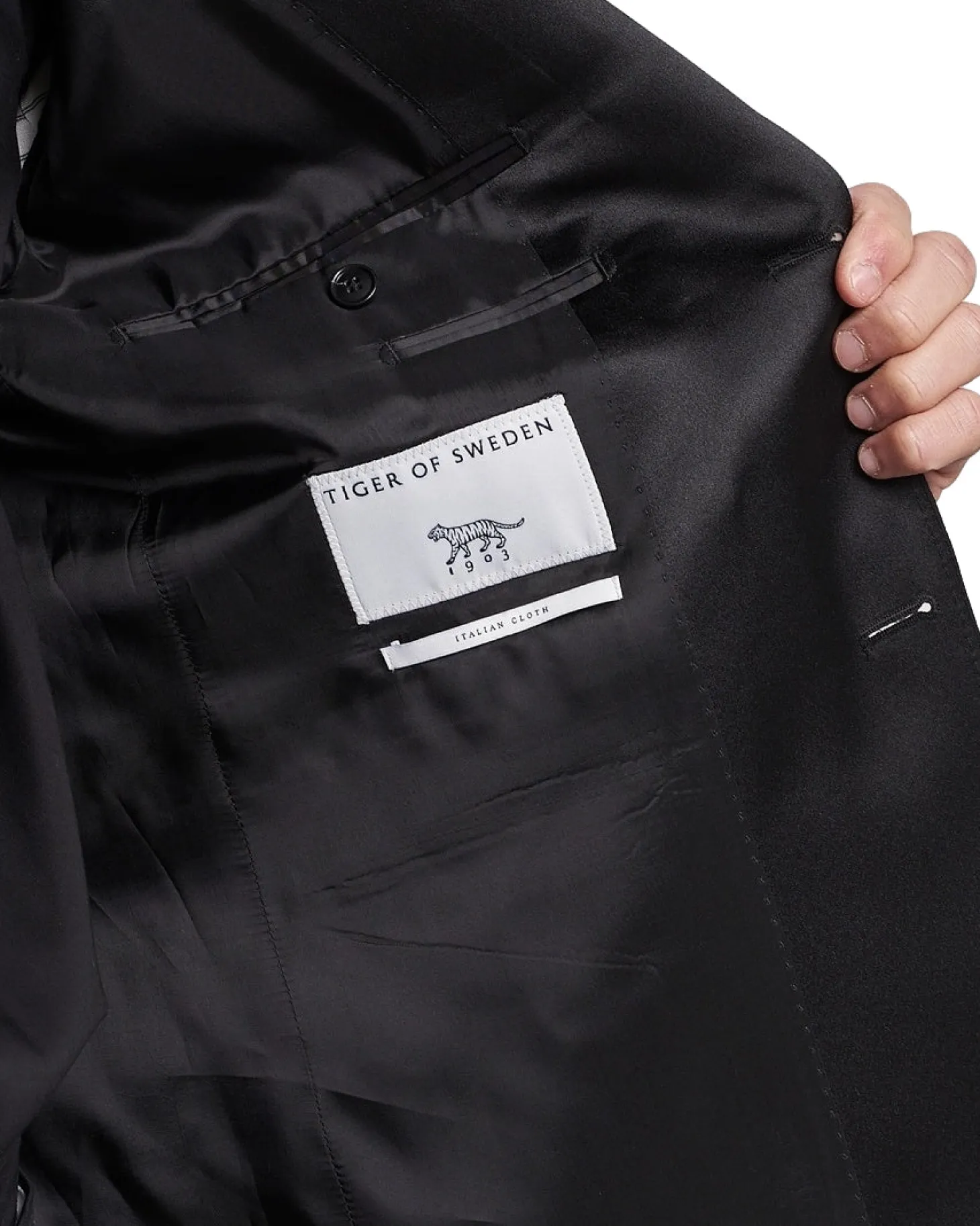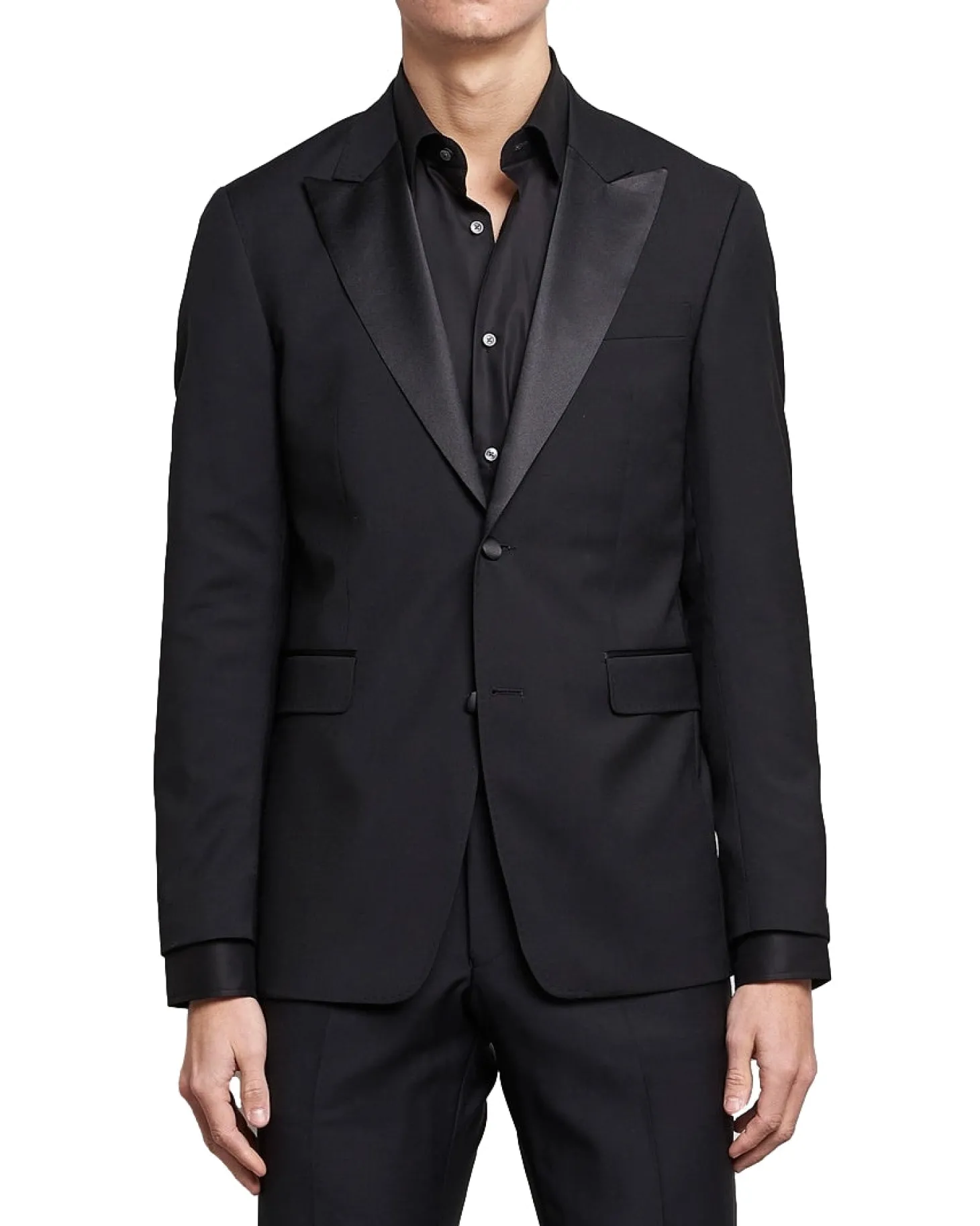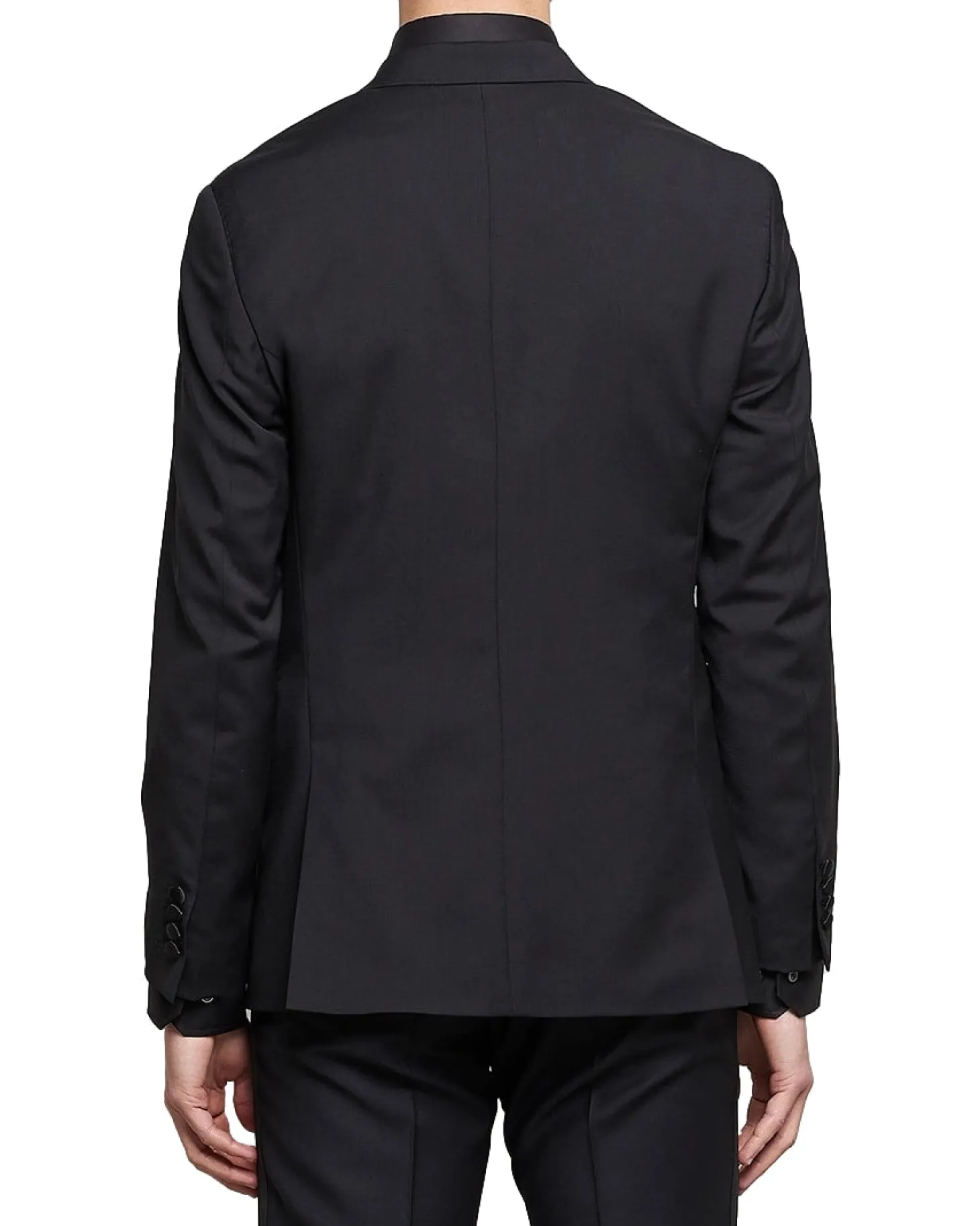 Helforet smokingblazer i smal passform. Slag, knapper og kantbånd i silke.
