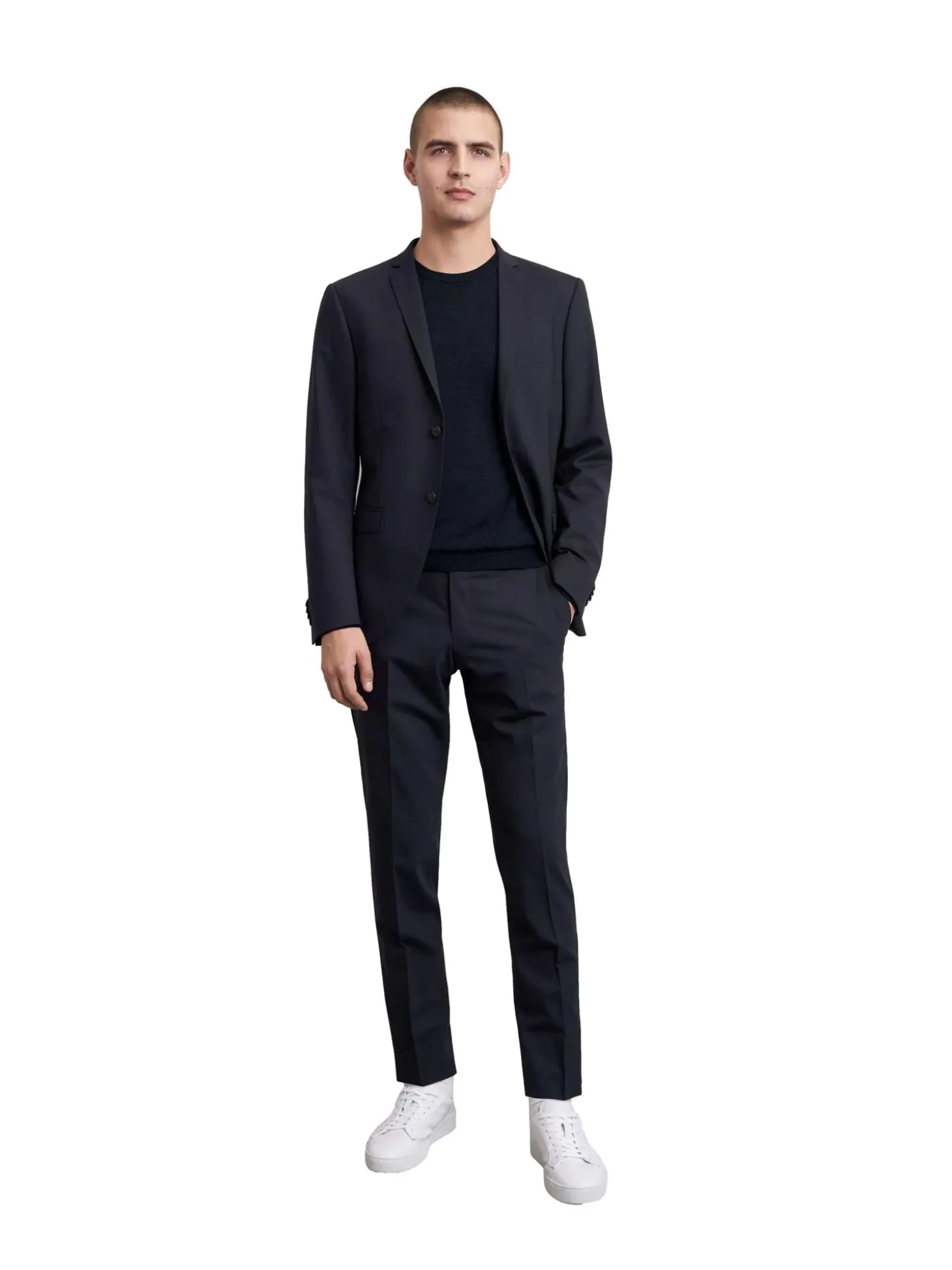 Dressbukser i smal passform med lavt liv. Ullkvalitet med stretch.