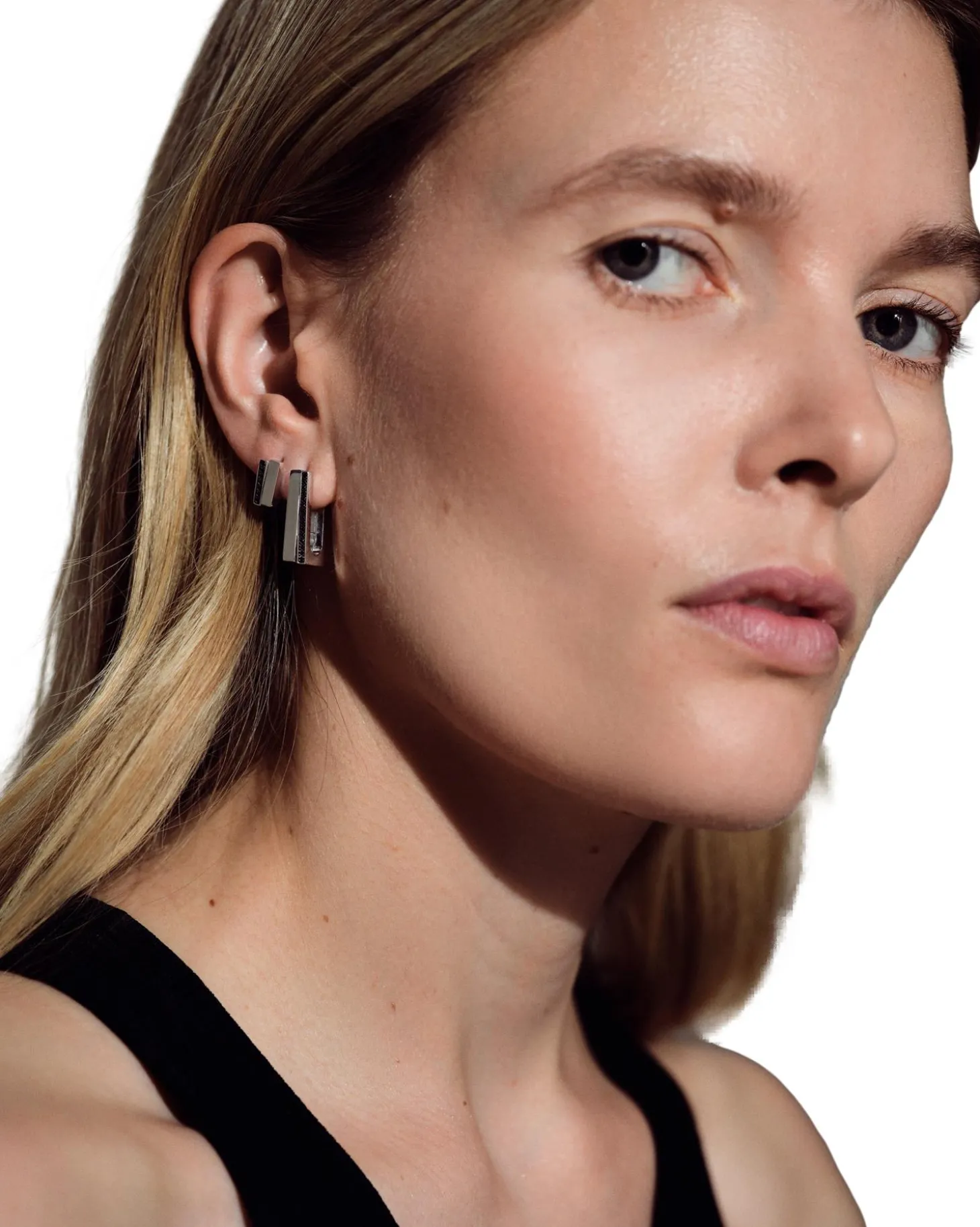 Øredobber med sort stein som representerer norsk fjellnatur.